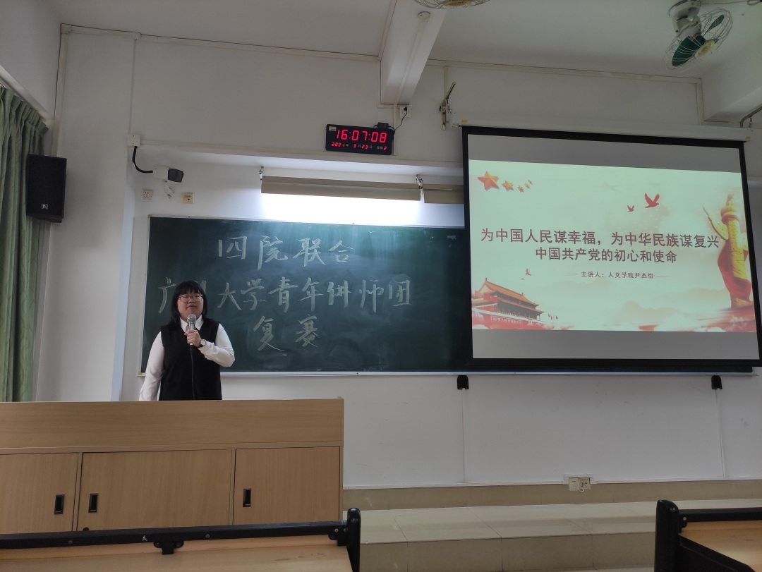 为深入贯彻落实习近平新时代中国特色社会主义思想,更好地学党史、明党史、讲党史,四院联合青马班举办了“青年讲师团”比赛,经过四院负责人和班委们的线上评选,共有四位同学成功晋级到复赛,他们分别是陈雨婷,邱海霞,尹杰怡和麦静彤四位同学。