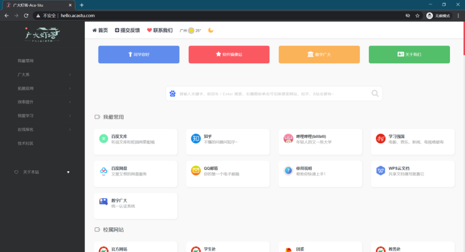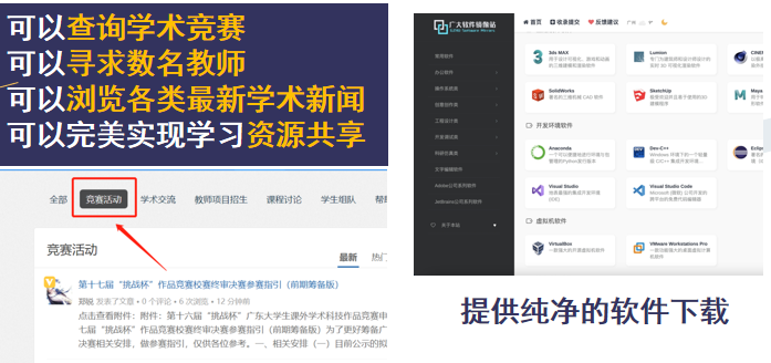 内置广大学术交流社区、软件镜像站