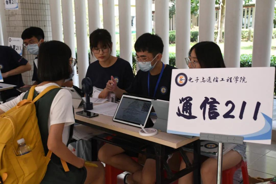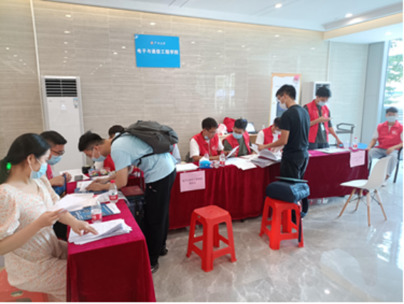 当前国内疫情形势复杂。在迎新现场,各环节衔接有序,新生们根据现场指引,积极配合学校疫情防控工作,进入校门后保持一米以上安全距离完成行李物品消毒、手部消毒和更换口罩、测量体温、出示健康码和核酸检测阴性结果证明、核验身份等报到流程,再前往各自学院报到点。同时,校园内设置反诈骗宣传区,提醒新生提高安全防范意识,筑牢反诈骗思想防线;在学校的报到点外设置“家长休息区”,在做好疫情防控的同时提供暖心服务。学院大学城的迎新点在竹苑5栋北侧架空层,新同学陆续在志愿者的引领下来到报到点,导生组帮助新生完成报到手续。我们努力让每一位同学感受到电信学院大家庭的热情与温暖,通过悉心的引导让他们更好、更快融入新环境。