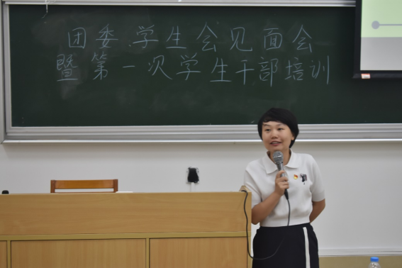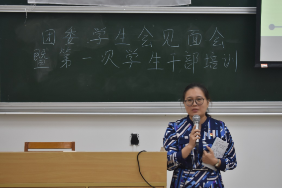 欧阳曦老师作为学生第一党支部书记,给我们介绍了学生第一党支部,然后祝福大家工作顺利,在团委学生会中遇到更好的自己。