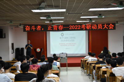 联合考研协会在图书馆一楼讲学厅举办2022年考研动员大会。大会邀请了学院在读研究生欧嘉敏以及李旭、郭晖、胡琳淳、殷可晴四位考研成功上岸的优秀学生代表为同学们分享学习经验和备考技巧,电信学院院长唐冬教授、2019级辅导员李佩瑾以及全体2019级同学参加了此次动员大会。