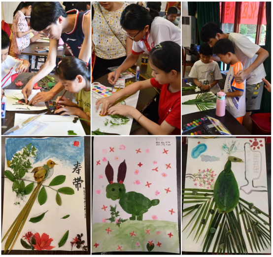 之后孩子们在户外寻找植物样本,并用其制作画像。同学们发挥天马行空的想象力,制作了一幅又一副生动的画像。