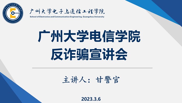 针对毕业生马上要走出校园走进社会,学院有幸邀请到小谷围派出所的社区民警甘警官为毕业生进行反诈骗宣讲。甘警官用通俗明了的语言介绍了近期高校发生的刷单诈骗、网聊诈骗的手法,还介绍了常见的客服诈骗,培训诈骗,虽然这些诈骗的手段常见,但还是有不少同学上当,希望同学们平时要提高警惕,避免落入这些不法分子精心布下的局。