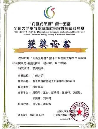 科研方面,发表JCR-Q1期刊论文1篇,EI索引会议论文1篇,在投JCR-Q2期刊论文1篇,申请发明专利10项,实用新型专利1项;主持参与国家级大创项目2项、省部级大创项目1项,参与广东省“攀登计划”项目1项。