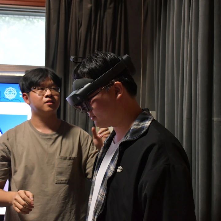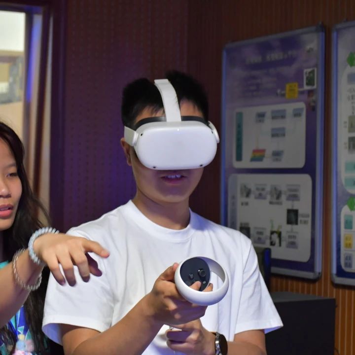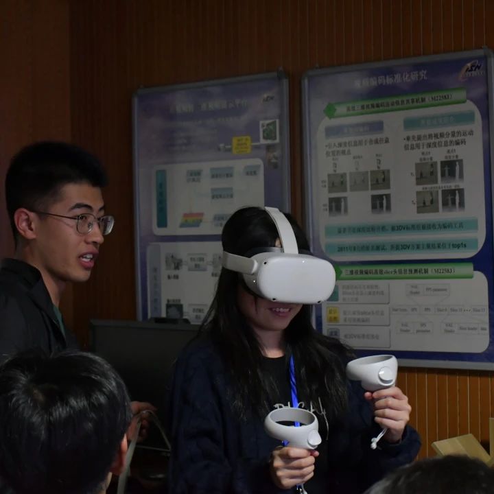 接着,实验室师兄介绍了QoE评价体系的研究。并通过VR来演示,访学团成员也参与进入其中。
