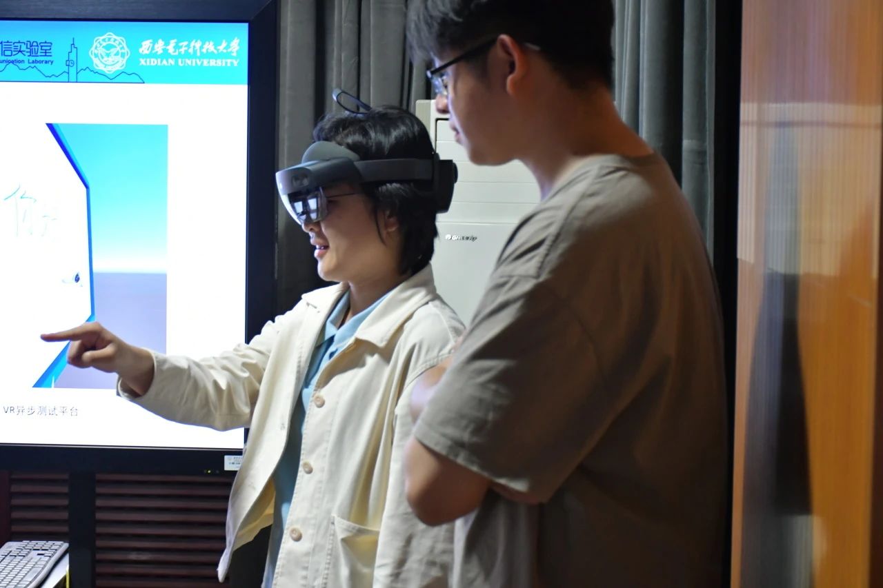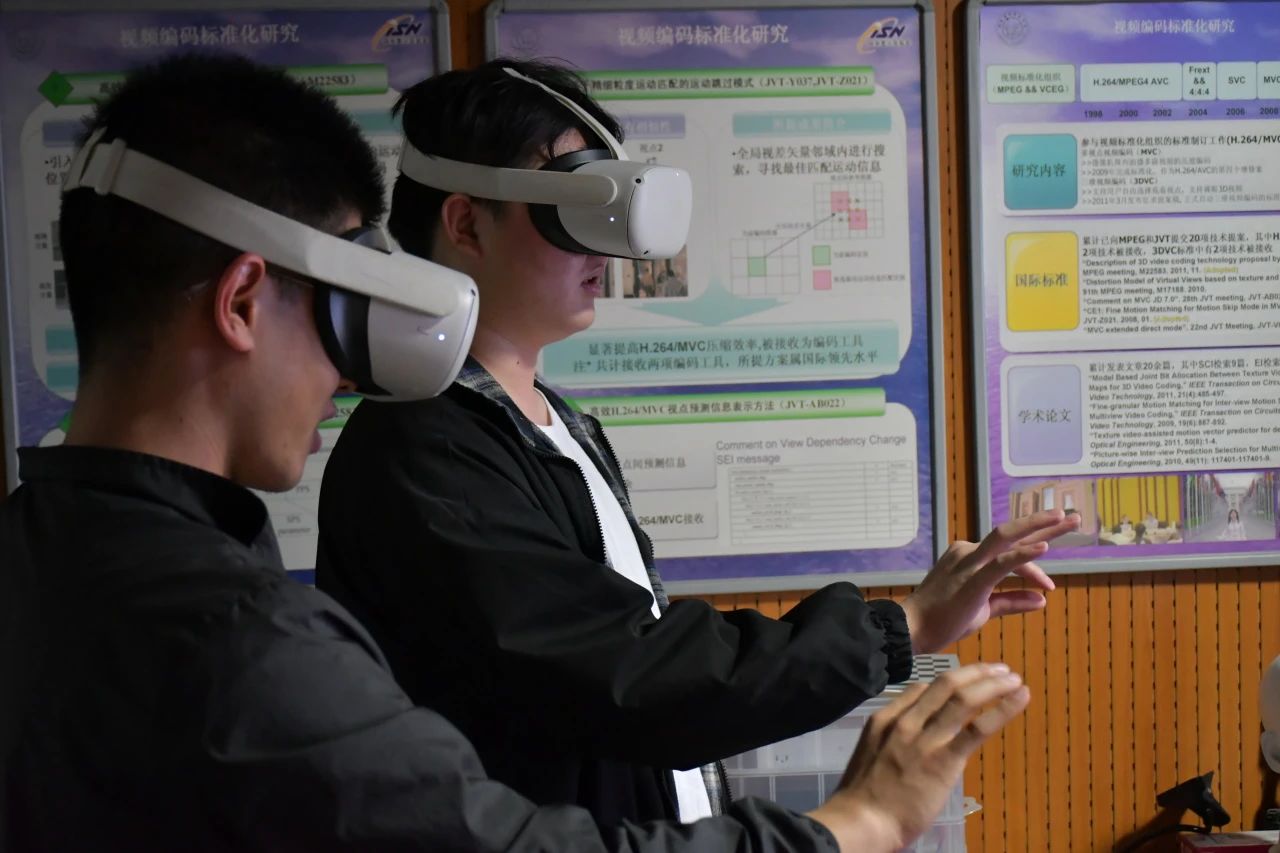 暂做休整后,下午我们参观了杨付正教授的多媒体通信实验室并交流,杨教授给我们分享了实验室的研究方向以及关于多媒体通信的一系列专业知识,随后他带领的研究生师兄们也给我们作了一些关于QoE(体验质量)分享,以及对于云游戏、虚拟现实等的讲解,并通过VR演示的方式给我们生动形象地展示了关于QoE的影响要素,这也加深了我们对于这些知识的理解,会后我们都亲身佩戴了这些VR设备进行操作,给我们本次的交流带来了一些独特的体验。