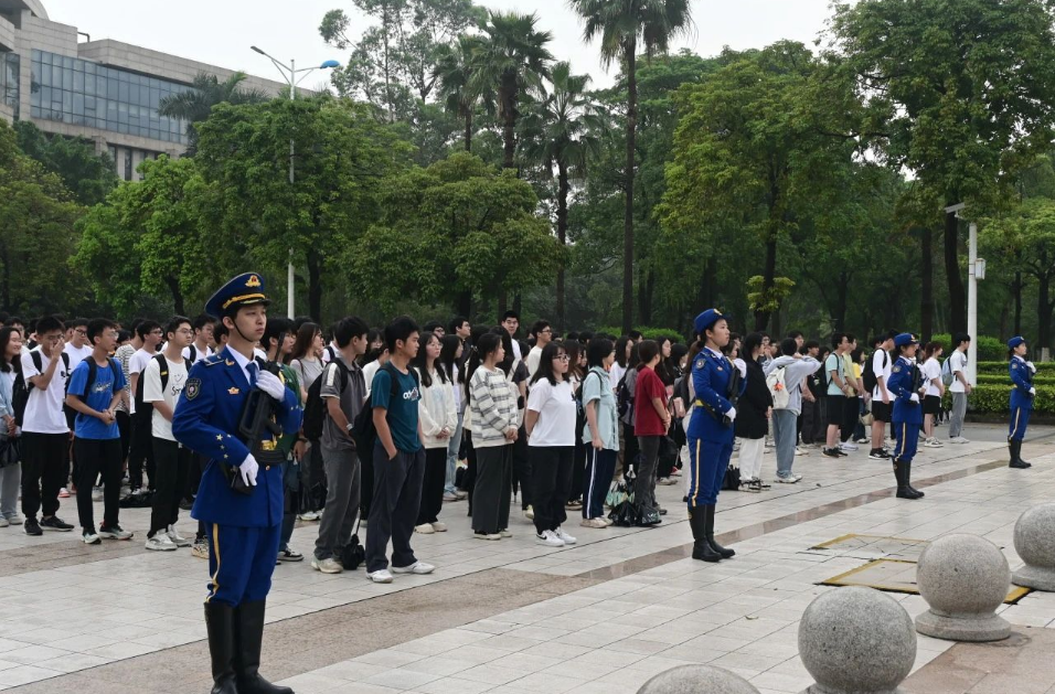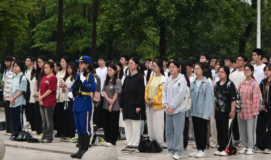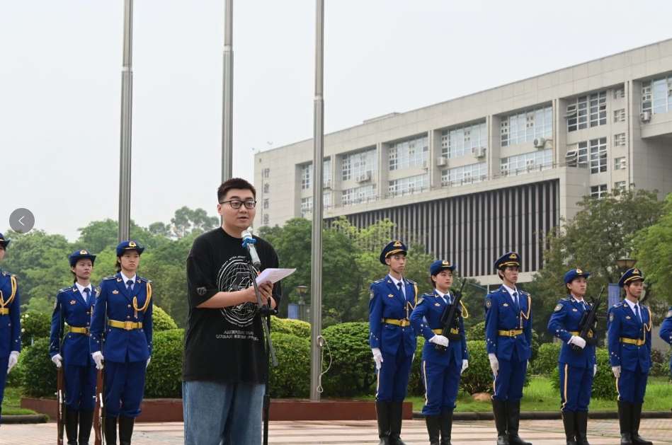 2024年4月22日,电信学院全体大一学生以及部分高年级学生在图书馆广场进行庄严的升国旗升校旗仪式及国旗下的讲话。