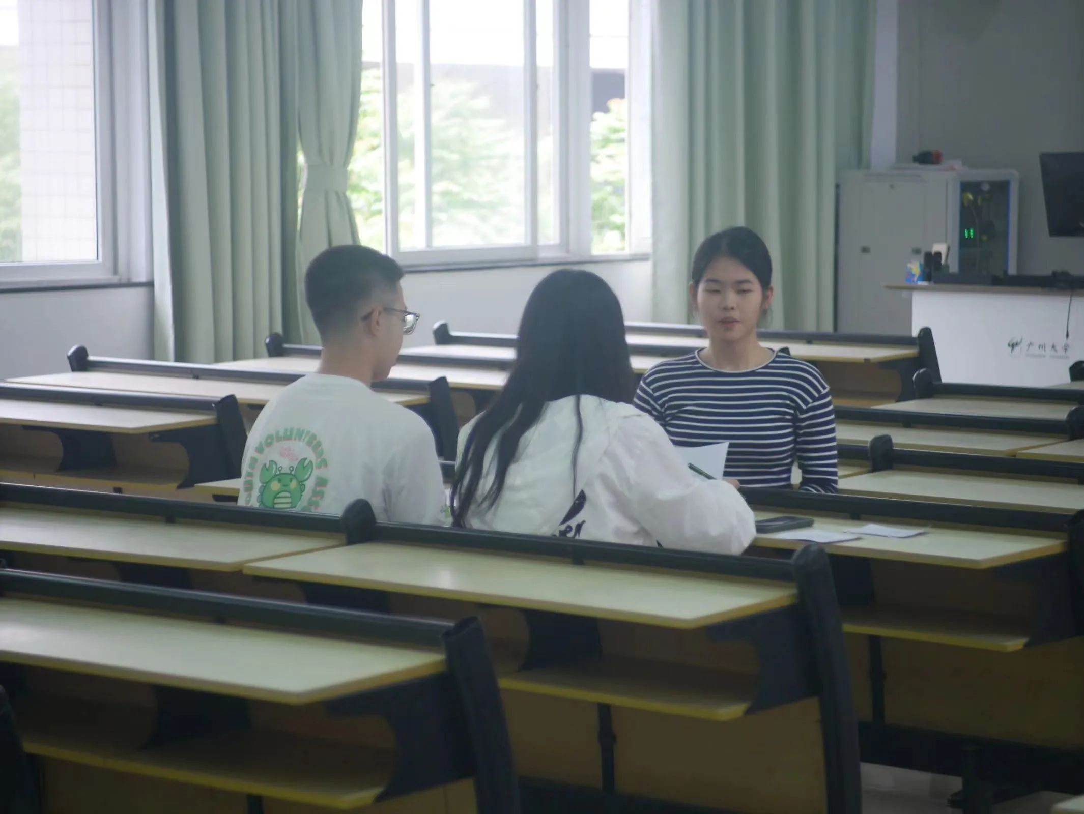 为了让每位同学都能在舒适与便捷中展现自我,面试环节采用了融合线上线下的双轨模式。同学们脸上洋溢着盎然的活力,他们眼中闪烁着对广交会的向往。面对考官精心筹备的提问,同学们没有丝毫怯懦,而是以流畅英语分享服务经验,言谈间洋溢着对社会贡献的热情与成就感。