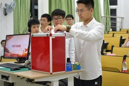 第五届学生委员会委员(各位学生委员候选人进行一分钟竞选演讲),竞选演讲结束后,学生代表团有序进行投票。