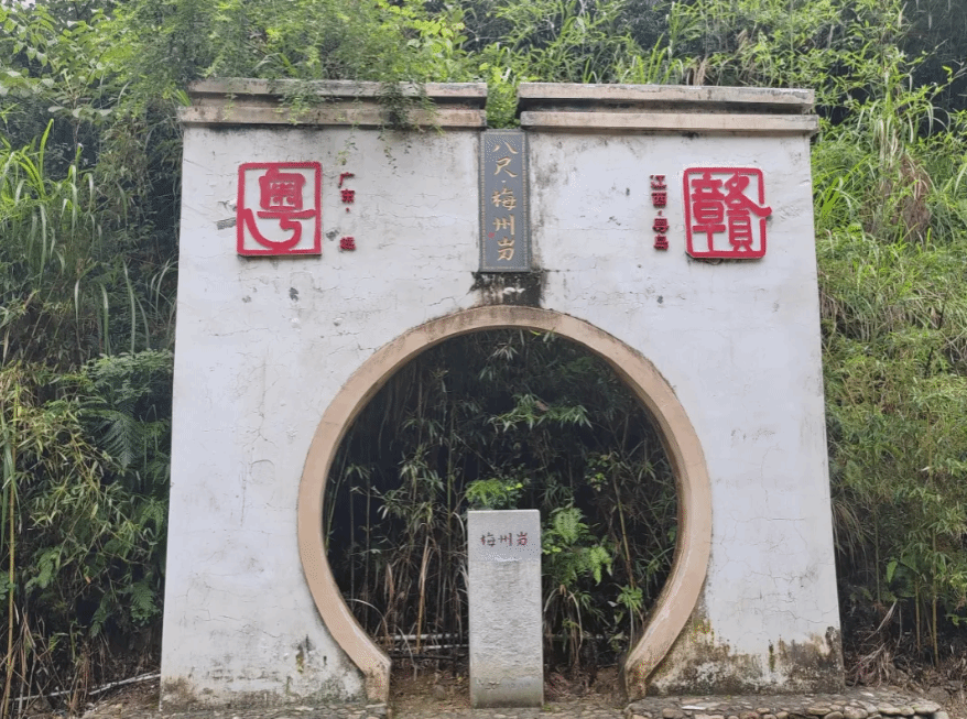 沿着梅州岃驿站面前的道路直走100左右就能看到网红打卡点梅州岃。在这里,游客可以收获“脚踏两省”的奇妙体验。