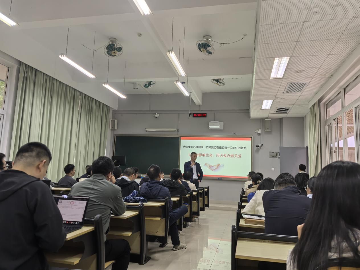 为进一步加强大学生心理健康教育工作,提升师生心理危机预防与干预能力,2025年3月4日电信学院邀请了学校心理健康教育与咨询中心副主任沈洪炎老师在理科南106课室对全院教职员工开展培训,培训主题为大学生心理危机识别与应对,会议由学院党委副书记谢玲老师主持。