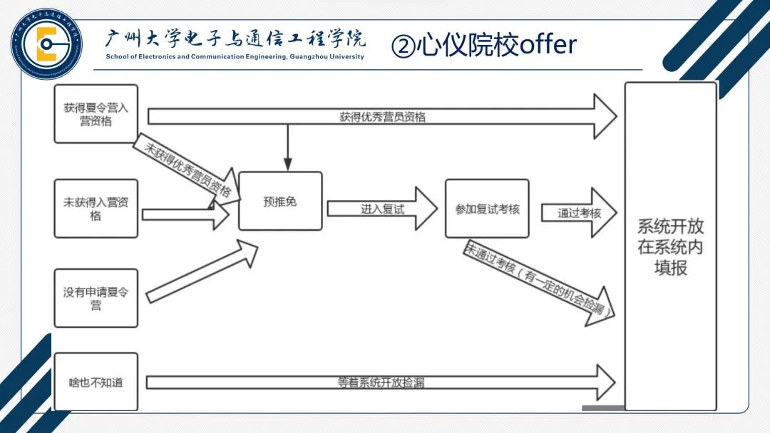 李楚宪师兄告诉我们夏令营中,学生的成绩排名、英语水平、科研成果和竞赛等都很重要,即使在夏令营中被拒绝了,也千万不要灰心,更不要失去信心,总结经验,在下一场面试中能有更好的收获!