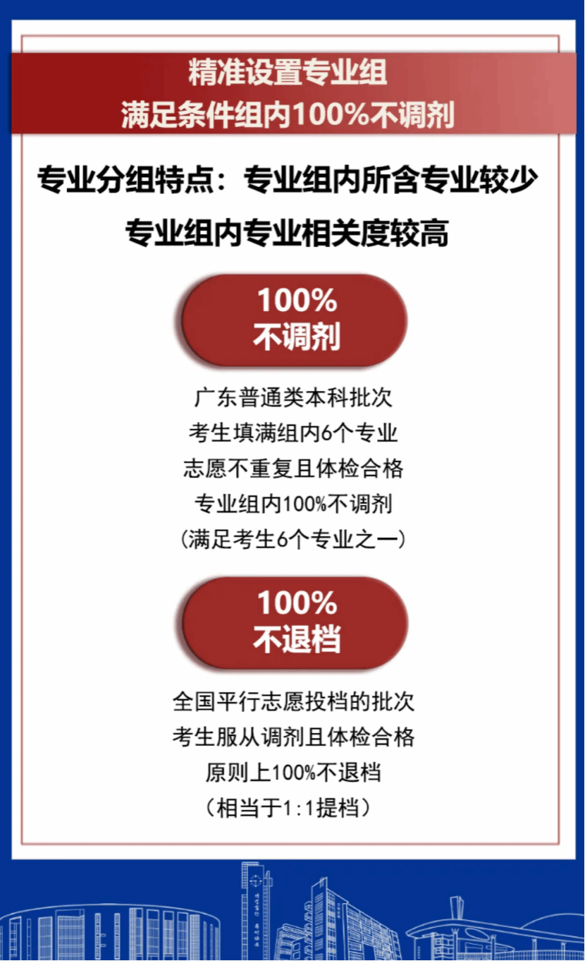 为最大化满足考生个性化报考需求,今年学校专业分组较细。在广东本科批提前批教师专项物理类、历史类、音乐类共设置29个招生专业组,本科批物理类、历史类(含地方专项、中外合作办学、国际联合培养)共设置38个招生专业组;本科批艺术类、体育类共设置8个招生专业组。