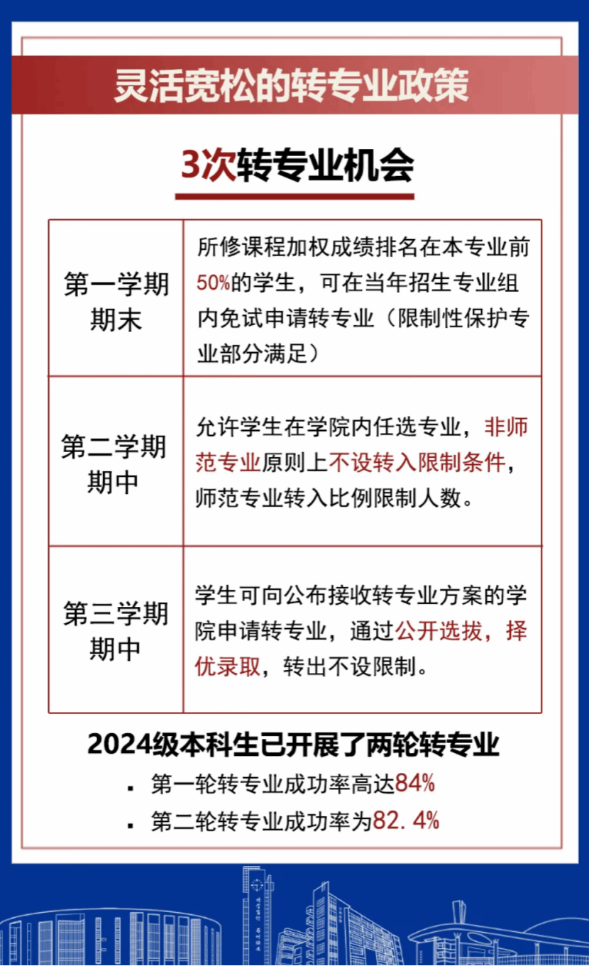 今年,学校持续施行灵活宽松的转专业政策,期望学生更加理性、全面地规划自己的未来。