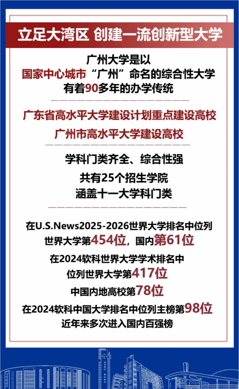 是以国家中心城市“广州”命名的综合性大学,于2000年合并组建,有着90多年的办学传统。