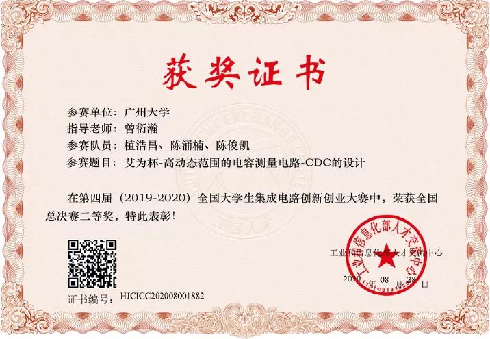 第四届全国大学生集成电路创新创业大赛·艾为杯全国二等奖