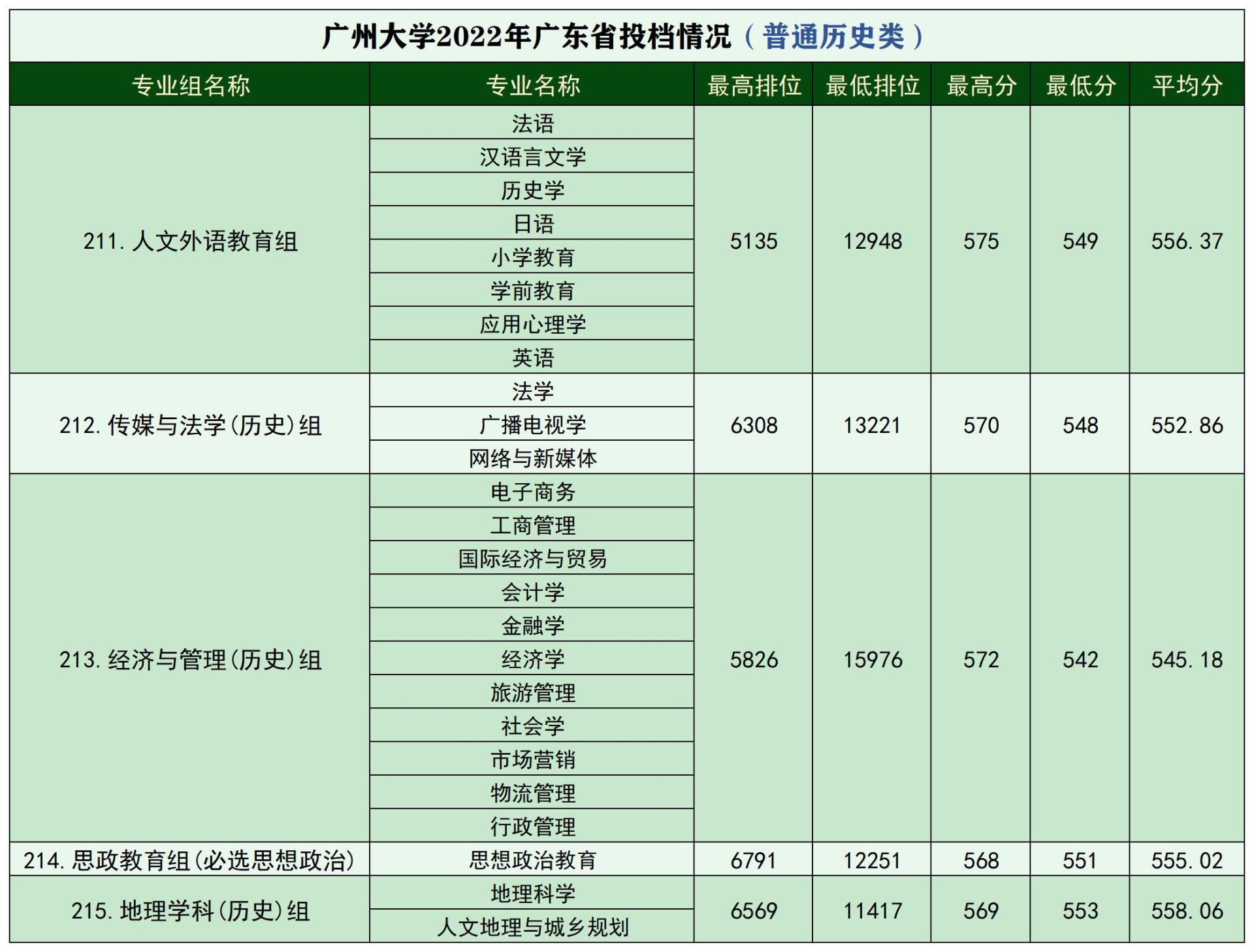 广东普通历史类投档情况(不含中外合作专业)