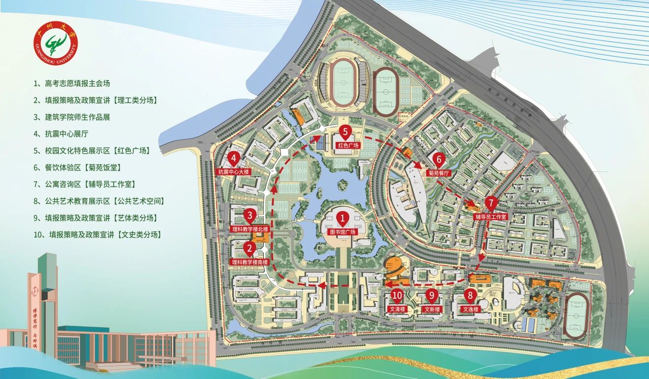 公共交通:搭乘地铁4号线或7号线,在大学城南站(D出口)出站。步行50米至综合商业南区(公交站),乘坐大学城专线1路、大学城专线3路、大学城环线2路、番202路、番201路、383路或997路公交车。在广大(公交站)下车,根据指引进入大学城校区。