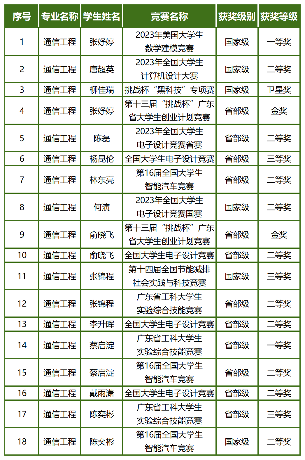 的通信工程专业被评为B+级别,排名67。通信工程入选广东省省级一流本科专业建设单位。