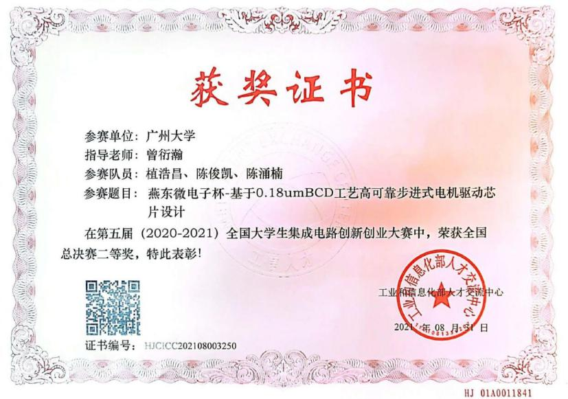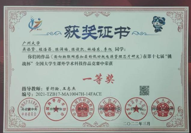 第五届全国大学生集成电路创新创业大赛华南赛区一等奖1项、三等奖2项