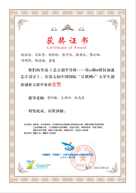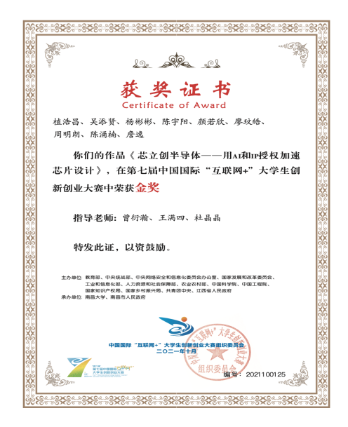 2021年10月,芯立创半导体团队获第七届中国国际“互联网+”大学生创新创业大赛金奖。