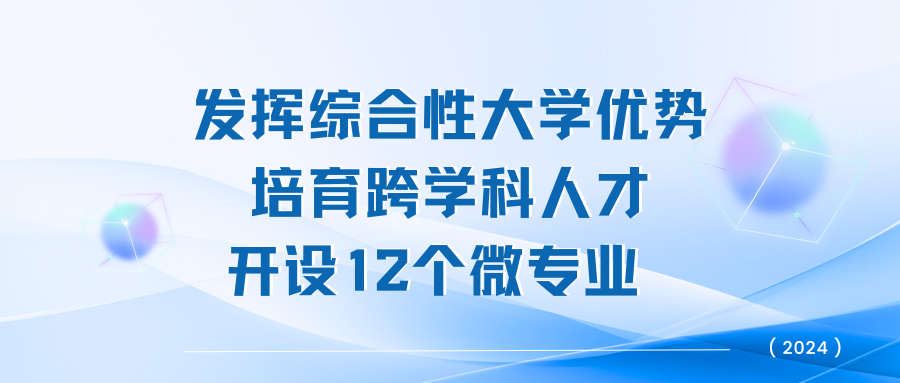设置了12个微专业培养跨学科人才。微专业以培养跨学科交叉融合的新型人才为目标,围绕某个特定学术研究和应用领域、产业发展需求,开发和开设系列核心课程,鼓励学有余力的学生在学习主修专业的同时,根据兴趣专长修读微专业。目前校内已开设数字法学、元宇宙智能决策与人机交互等多门微专业。