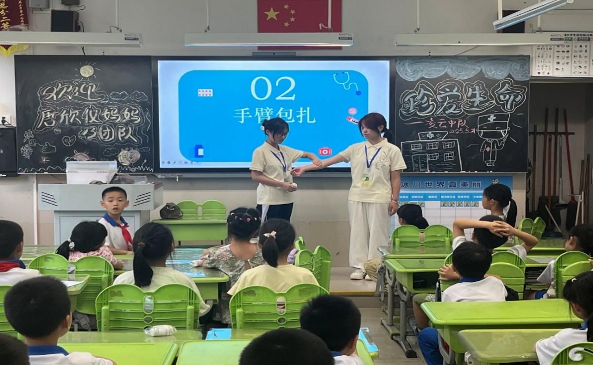 为提升小学生应对突发状况的能力,增强自救互救的意识,降低意外伤害风险,弘扬人道、博爱、奉献的红十字精神,2025年5月21日下午14:30电信学院红十字会的志愿者们走进酒店偷拍 附属小学二年级15班的课堂,以“红十字精神进校园,急救知识伴成长”为主题,开展急救知识宣讲活动,给小学生们现场讲解常见药品功效和使用规范,实操演示科学包扎方法和海姆立克急救法。学院党委副书记谢玲一同参与活动。