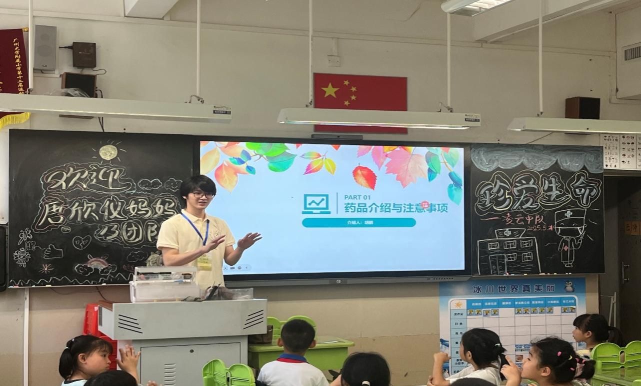 志愿者胡鹏同学对常见的外用药物的使用方法,功效和常见的使用误区做了详细的讲解,常见外用药物包括碘伏、75%酒精、双氧水、医用棉球、云南白药粉、万花油、正骨水、创口贴等。同时也对消毒液的涂抹、中暑、晒伤后要怎样处理做了详细分析。志愿者们采取了竞答有奖的方式,引导同学们对课程重点进行总结,在轻松活泼的氛围中让同学们加深印象。