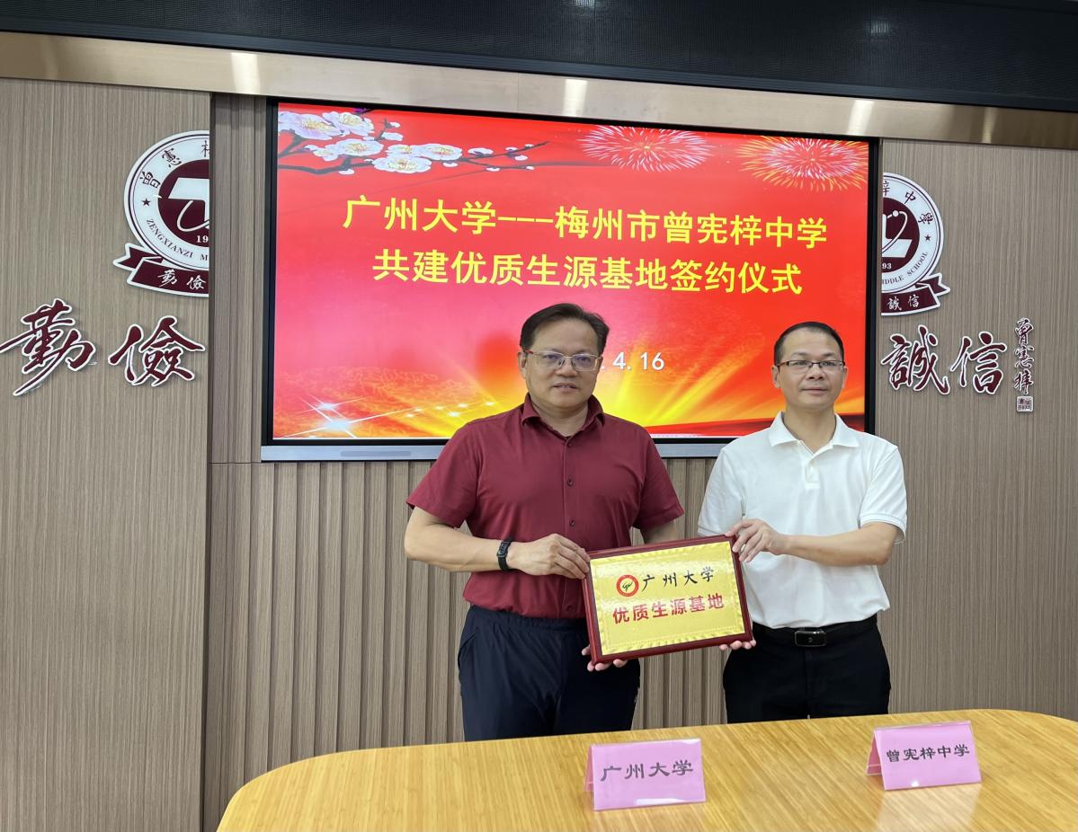 向梅州中学、曾宪梓中学、东山中学授予“优质生源基地”牌匾。(文案:王志杰 编辑审核:谢玲)