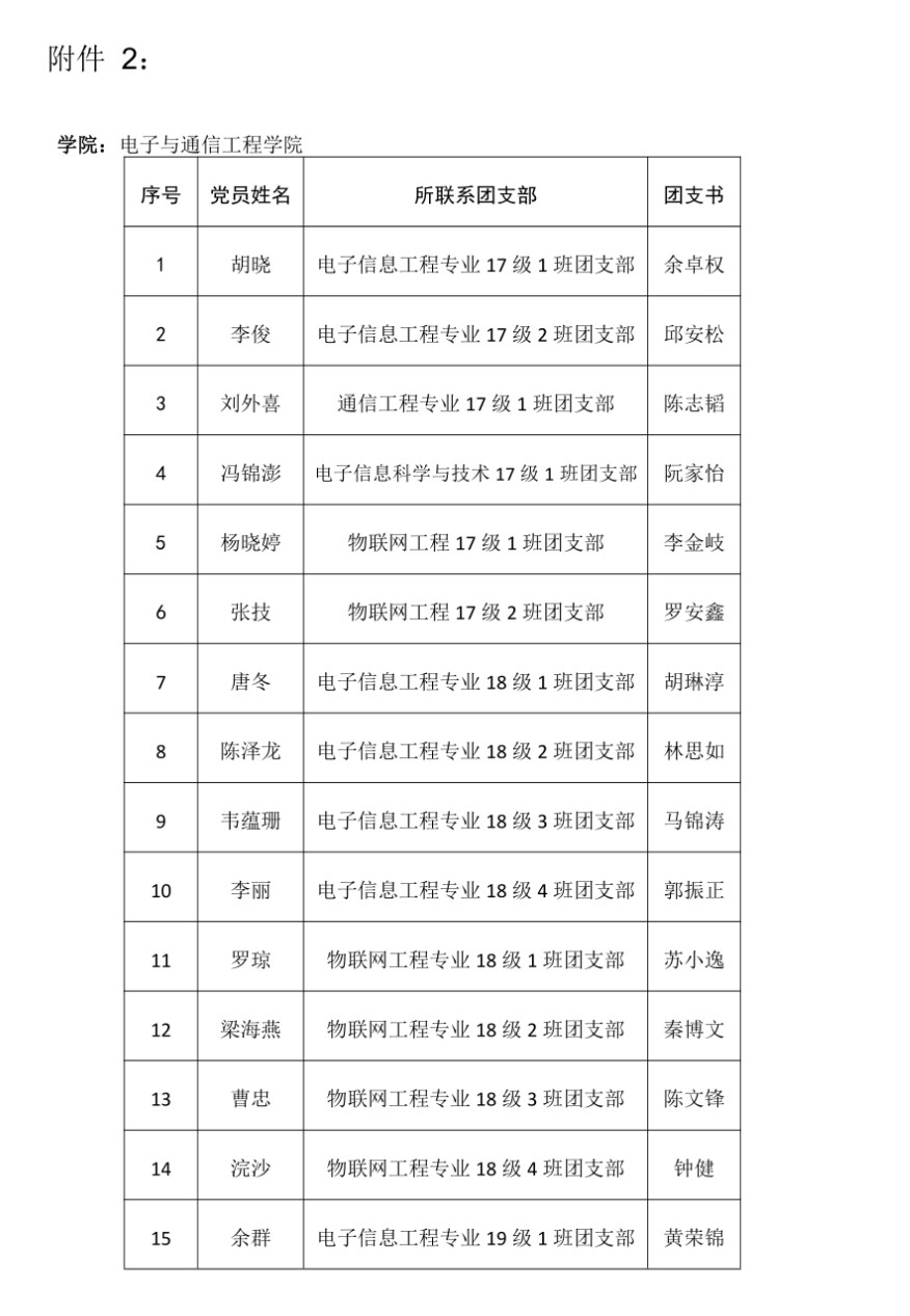(3)建立学院教工党员联系团支部台账目前学院共有教工党员 39 名,学生团支部 32 个(研究生团支部 3 个、本科生团支部 29 个)。按照学校提出的每一名教工党员都要有联系安排的要求,学院以各团支部安排一到两名教工党员为原则,建立学院教工党员联系团支部台账。具体安排见附件 2。