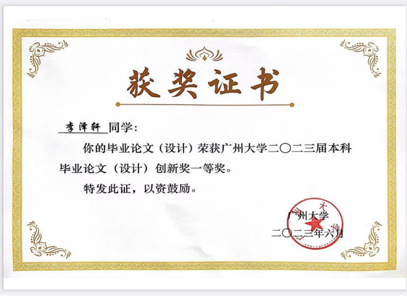 李泽轩:一等奖