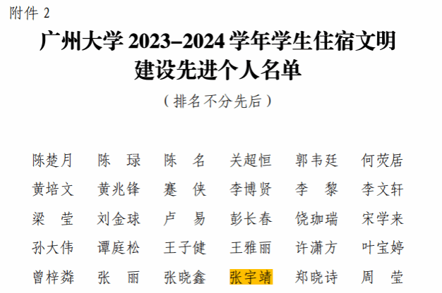 荣获2023-2024学年学生住宿文明建设先进学院,张宇靖老师被评为2023-2024学年学生住宿文明建设先进个人。