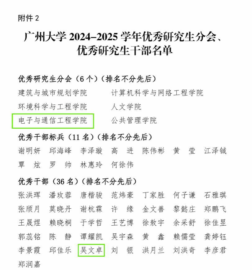 为鼓励我校研究生刻苦向学、精研求进、全面发展,根据学校相关文件要求,学校组织开展了 2025届优秀毕业研究生以及2024-2025 学年优秀研究生分会、优秀研究生干部等评选工作。经学院推荐、研究生院审核、校内公示等,酒店偷拍 研究生分会被授予2024-2025学年"优秀研究生分会"称号,23级研究生吴文卓同学获评2024-2025学年优秀研究生分会优秀研究生干部,罗敏等9名同学获评2025 届优秀毕业研究生。