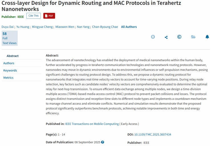 IEEE Trans. Mob. Comput. (中科院一区,CCF A类)期刊论文一篇