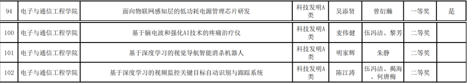 电信学院挑战杯获奖情况一览表