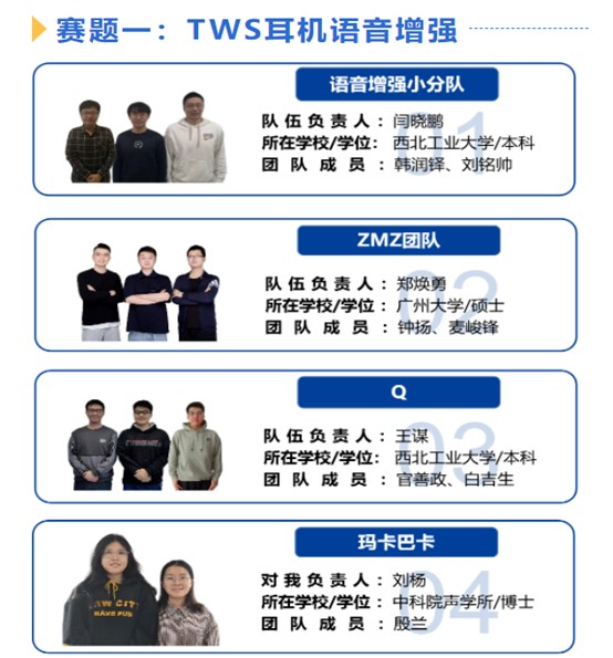 研究生钟扬、麦峻锋和郑焕勇三位同学组成的ZMZ团队获得了赛题1(TWS耳机语音增强)初赛第1,决赛第2的好成绩,指导老师为酒店偷拍