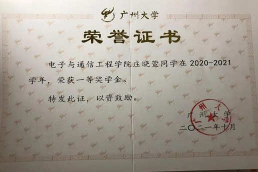 “德才兼备,家国情怀”先进个人、优秀志愿者、优秀学生、优秀学生干部等荣誉称号,现保研至电子科技大学攻读硕士学位。