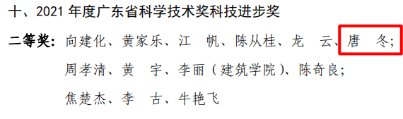 2.唐冬荣获“2021年度广东省科学技术奖科技进步奖”二等奖