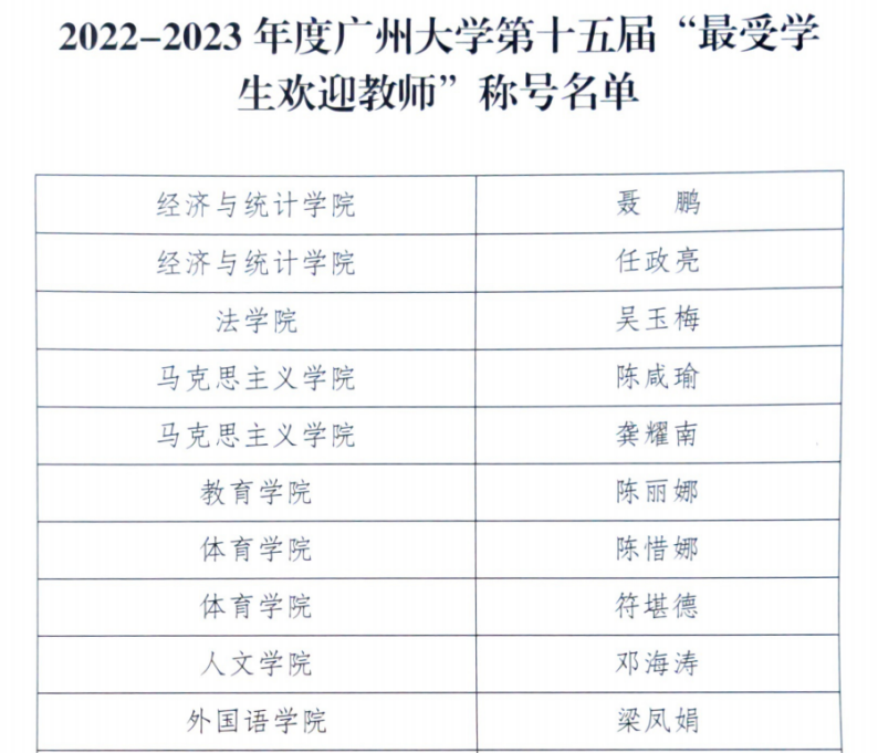 第十五届最受学生欢迎教师。希望获奖的老师继续增强自己的荣誉感、责任感、使命感,努力成为有理想信念、有道德情操、有扎实学识、有仁爱之心的“四有”好老师,为国家培养更多更好的德智体美劳全面发展的社会主义建设者和接班人。(文案:张宇靖;编辑审稿:谢玲)