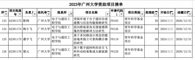 陈绚、杨小飞、潘宇飞、梁元四位老师获得青年科学基金项目立项。
