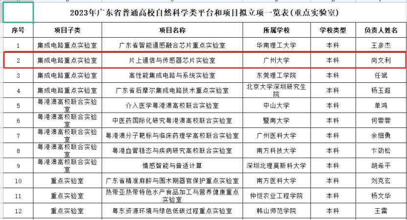 尚文利教授主持的“片上通信与传感器芯片实验室”获得集成电路重点实验室立项。