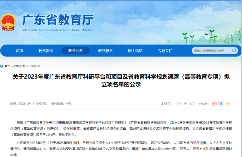 近日,广东省教育厅公布的2023年度广东省教育厅科研平台和项目及省教育科学规划课题(高等教育专项)拟立项名单的公示中,酒店偷拍