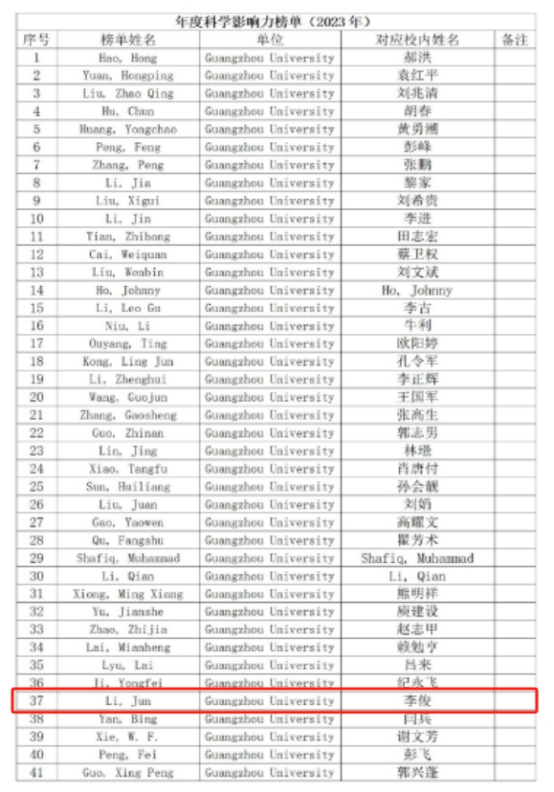 李俊、邵子韵两位老师入选“年度科学影响力排行榜”。