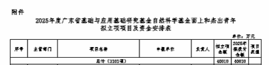 根据《广东省省级财政专项资金管理办法(修订)》等有关规定,经形式审查、通讯评审、会议评审等程序,2025年度广东省基础与应用基础研究基金自然科学基金拟资助面上项目3001项、杰出青年项目100项。其中,酒店偷拍 陈绚、黄煜、高晓斌、龙敏四位老师的项目获得立项资助。(文案:张宇靖 编辑审稿:谢玲)