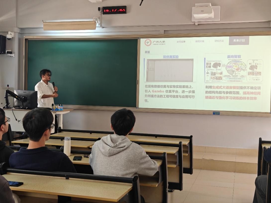 康旭亮分享了关于多主体系统与集群机器人研究的经验,介绍了搭建多任务系统平台时硬件与软件环境的选择建议,强调应采用标准化、公司化的硬件流程,以降低底层开发负担。在研究层面,他提出要明确研究方向与方法,关注实际物理约束与网络控制问题,并区分“实物部署”与“纯仿真”研究的侧重点。在论文发表方面,他建议瞄准热点方向、注重实验充分性(如双盲实验),并推荐结合智能化、端到端的研究趋势。他还邀请对集群机器人感兴趣的同学前往实验室参观交流。