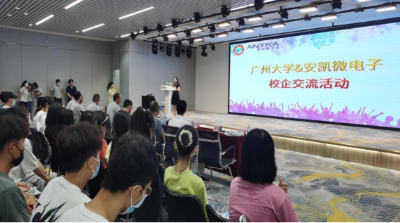 随后的师生交流中,广州安凯微电子副总经理汤锦基对师生一行走访表示热烈欢迎,并希望企业能与学校有长期紧密的合作。学院党委副书记谢玲对安凯的热情接待表示感谢,她介绍了学院近年来取得的发展成就,并表示,学院将充分发挥学科、人才等资源优势,通过模式创新、机制创新,加大与头部企业的实质性合作,增强服务社会的能力。双方应瞄准企业需求,开展共建科研机构,订单化专业学位人才培养,做好企业想做的事情,共同推进更加深入紧密的校企合作。