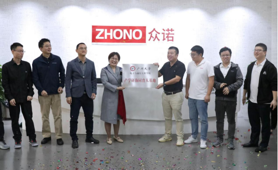 在揭牌仪式上,校企双方领导致辞后,学院党委副书记谢玲、副院长曾衍瀚和众诺微电子总经理王波共同为“产学研协同育人基地”揭牌,并在大学生职业生涯规划、学生实训、项目开发、科研成果产品化等几个方面达成基本的合作意向。